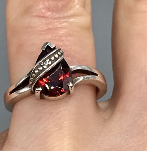 Sehr schönes elegantes wundervolles originelles sehr attraktives Design mit hohem Ringkopf, gefasst mit einem hochovalen roten geschliffenen Stein in Tränen-Form.