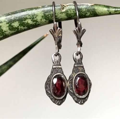 Antik Art Déco Edel Ohrhänger Ohrringe DAMEN Silber 800 rote Steine