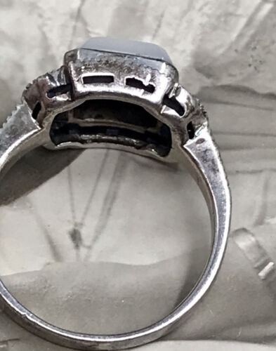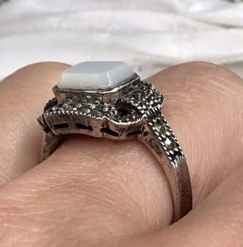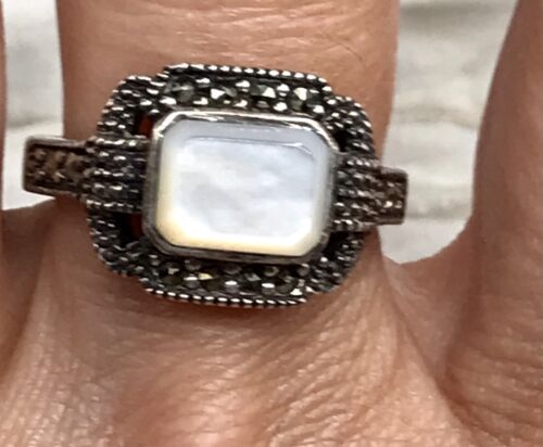 Antik Art Déco Edel Perlmutt Markasite DAMEN RING 925 Silber SUPER Gr.56 17,8