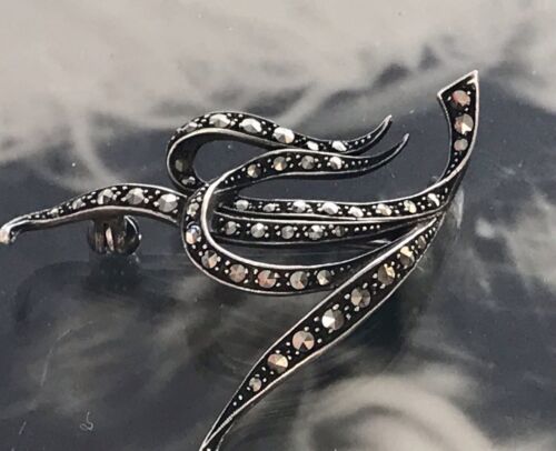 Antik Art Déco Edel prachtvoll Brosche Silber 925 Sterling Markasite