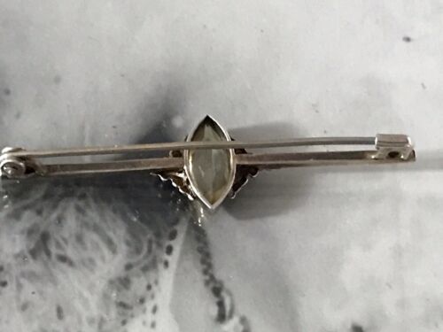 Kommodengriff präsentiert eine edle zauberhafte antike sehr geschmackvolle vergoldete Silber-Brosche Stabbrosche mit champagnerfarbenem wundervoll geschliffenen Stein. Näheres unbekannt.