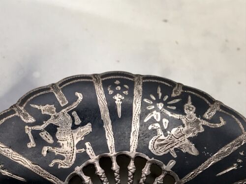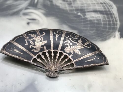 Antik Art Déco Fächer Brosche Sterling Silber Siam Nielo um 1930