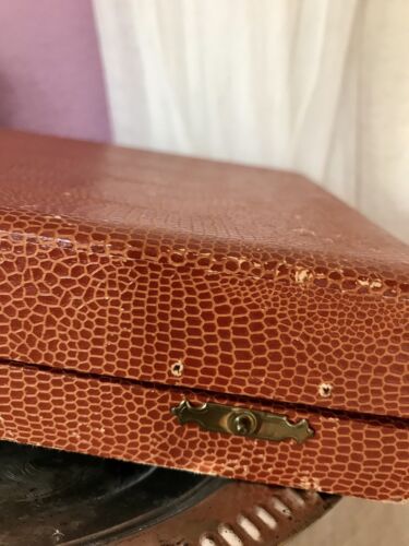 Das Besteck wird im abgebildeten Besteckkasten geliefert, ein Teil des Verschlusses fehlt, es kann deshalb nur einseitig geschlossen werden.