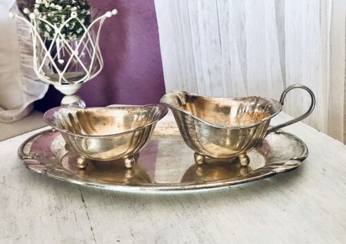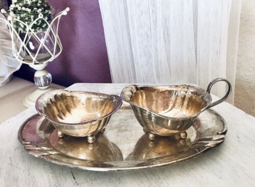 Antik Art Déco Hoka 40er Jahre Sahne-Satz Milch& Zucker versilbert 3 Teile