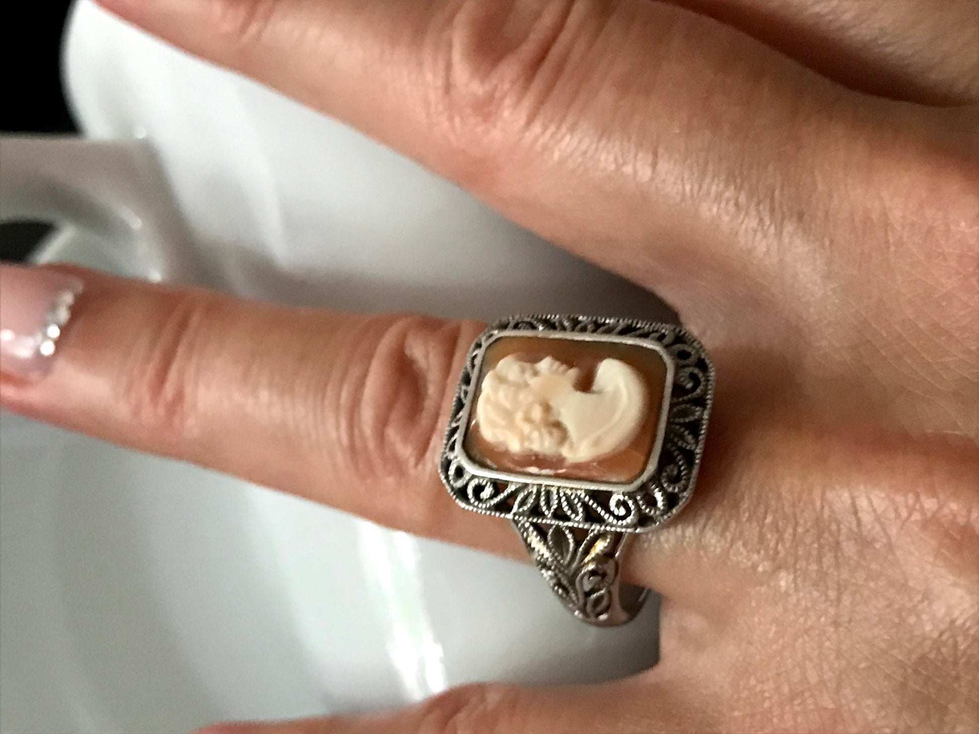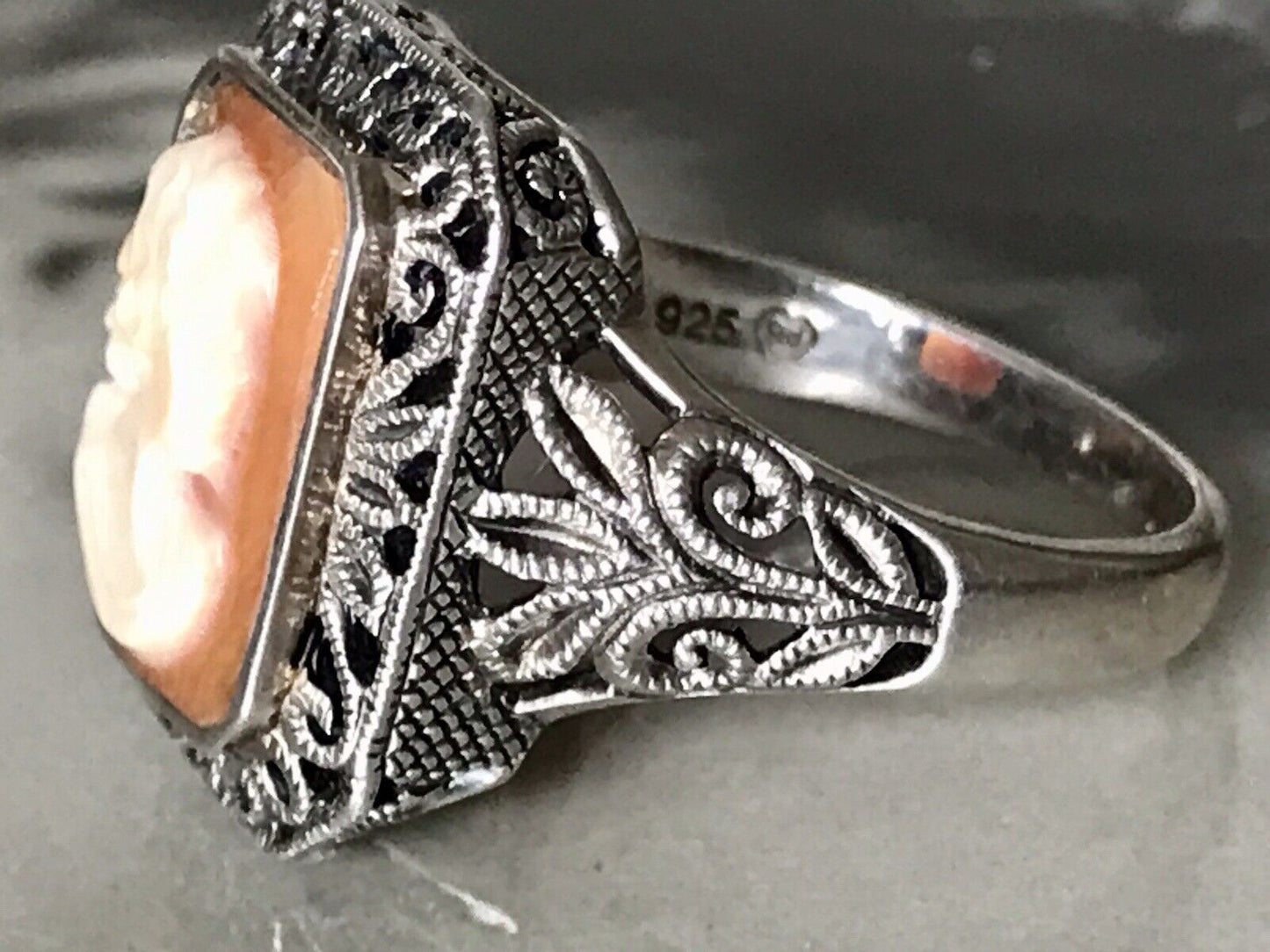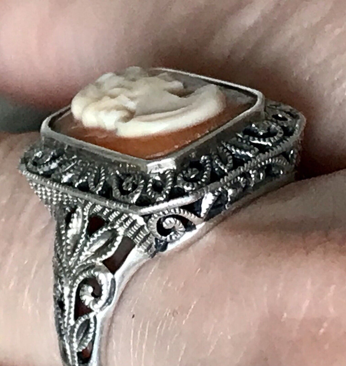 Antik Art Déco Jugendstil Edel DAMEN RING Silber Muschelgemme Cameè Gr. 62