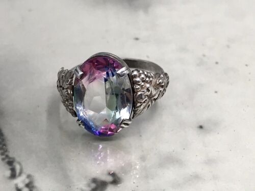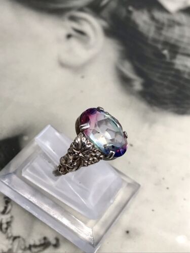 Antik Art Déco Jugendstil Rheinkiesel DAMEN RING Silber 830 SUPER Design Gr.52