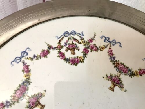 Antik Art Déco Jugendstil Tortenplatte auf Fuß Metall Keramik o.Porzellaneinsatz