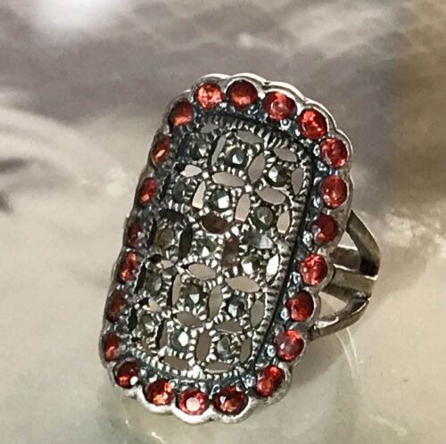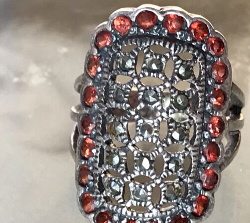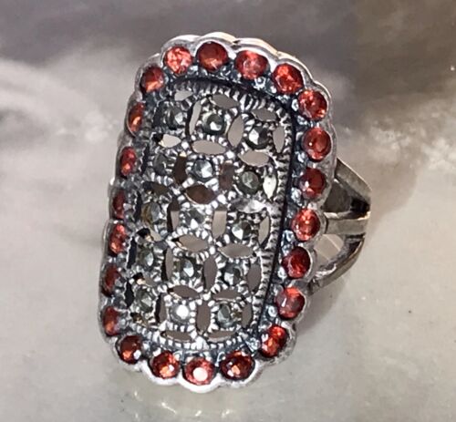 Antik Art Déco Markasite Granate DAMEN RING Silber 925 Gr.51 16,2
