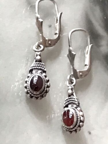 Kommodengriff präsentiert 1 Paar von zauberhaften antiken sehr schönen edlen Silber-Ohrhängern OHRRINGEN mit dunklem etwas rötlichen Stein