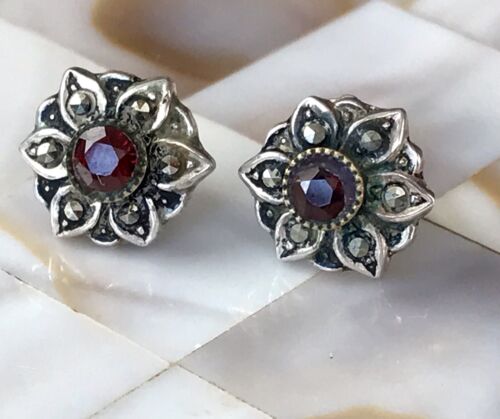Antik Art Déco Ohrringe Ohrstecker DAMEN Silber getestet Granatsteine Markasite