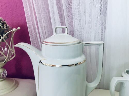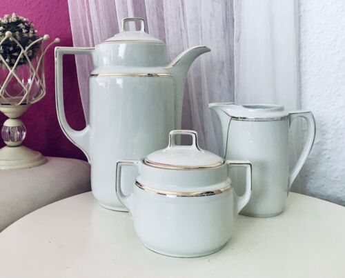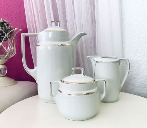 Antik Art Déco Porzellan Kernstück Kaffee Service Edel Weiß Goldrand