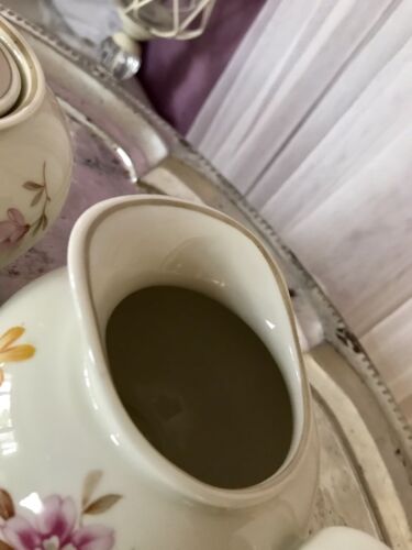Kommodengriff präsentiert einen wunderschönen antiken Kaffee-Kernstück wohl aus Ende der 40er Jahren von Weimar Porzellan Serie Beate Dekor 2201 11 bestehend aus: