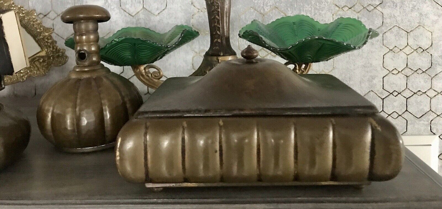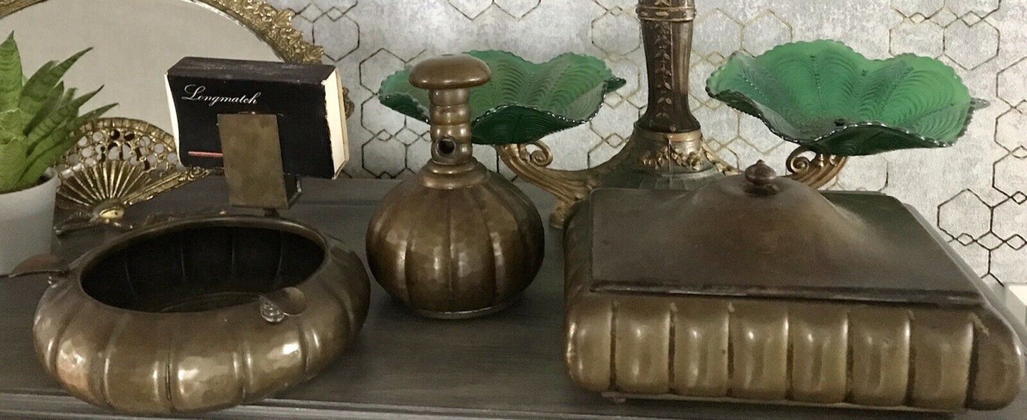 Kommodengriff präsentiert ein schönes antikes Art Déco Raucherset aus Messing