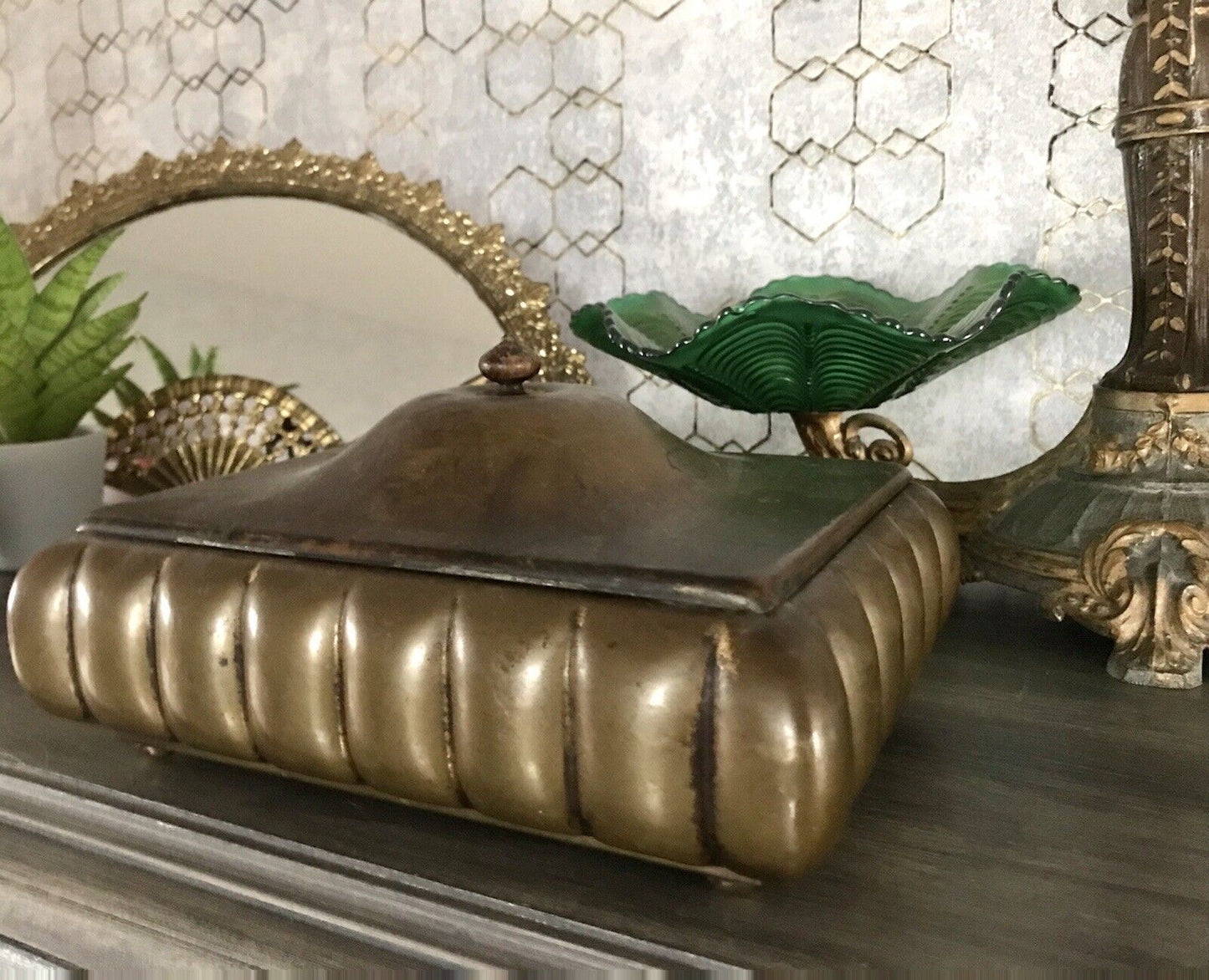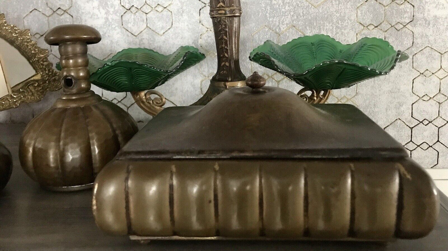 Antik Art Déco Raucherset Zigarren Dose Schneider Aschenbecher Messing