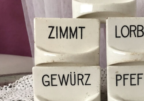 Antik Art Déco Schütte Vorratsgefäß Keramik Zimmt weiß schwarz