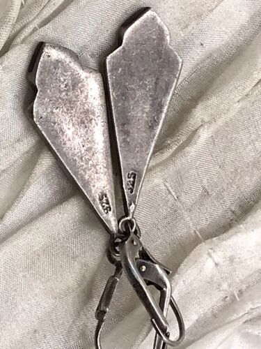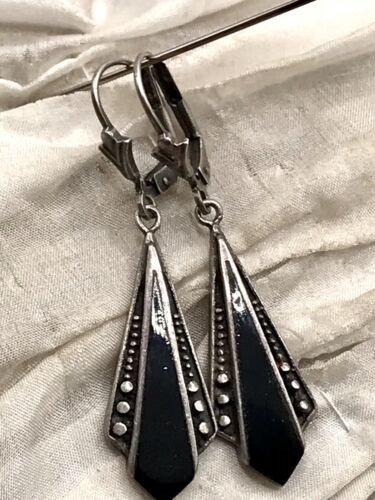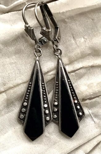 Antik Art Déco Sehr EDEL Ohrhänger Ohrringe DAMEN Silber 925 Onyx