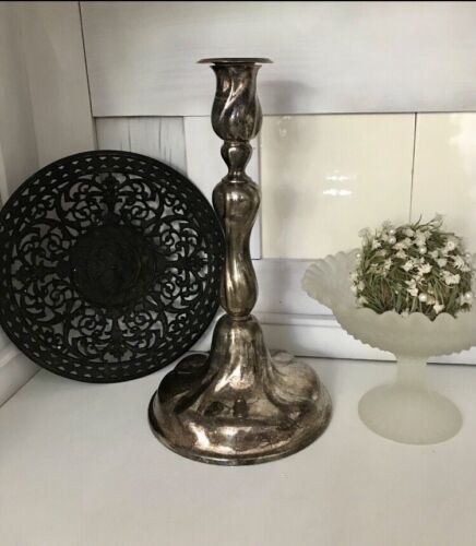 Kommodengriff präsentiert 1 wunderschönen versilberten großen antiken Art Déco Kerzenständer Kerzenhalter Kerzenleuchter