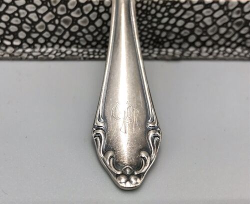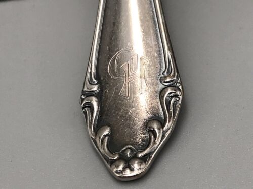 12 versilberte im barocken Muster am Rand gearbeitete Kuchengabeln und mit graviertem Monogramm GH oder CH.
