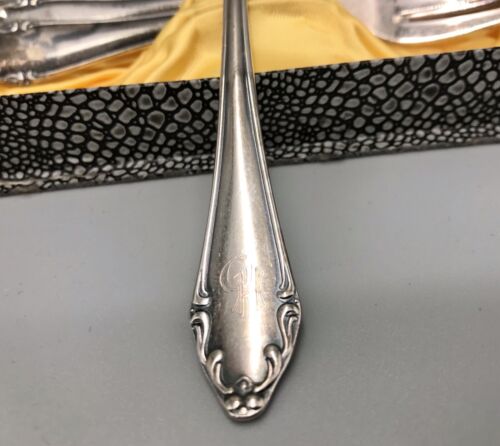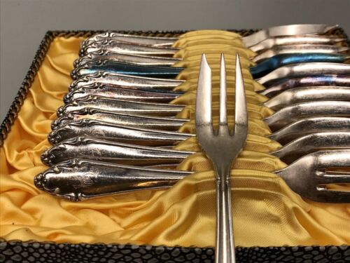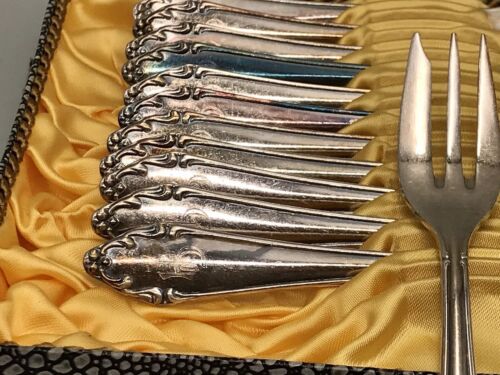 Antik Art Déco versilbert Besteck 12 Kuchengabel Julius Kratz Solingen im Kasten