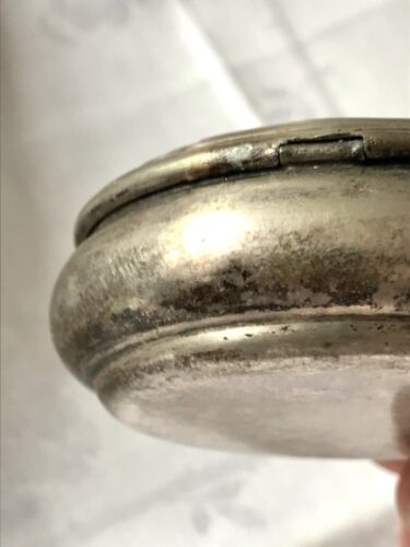 Kommodengriff präsentiert eine wunderschöne antike versilberte Art Déco Pillendose Pillendöschen von WMF Geislingen