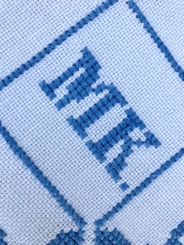 Wunderschön blau unter anderem mit MK -Monogramm bestickt auf der Vorderseite.