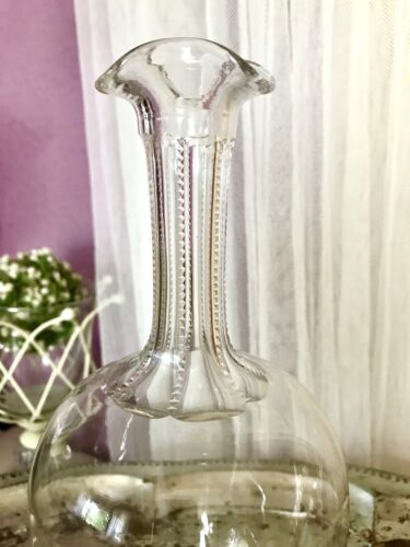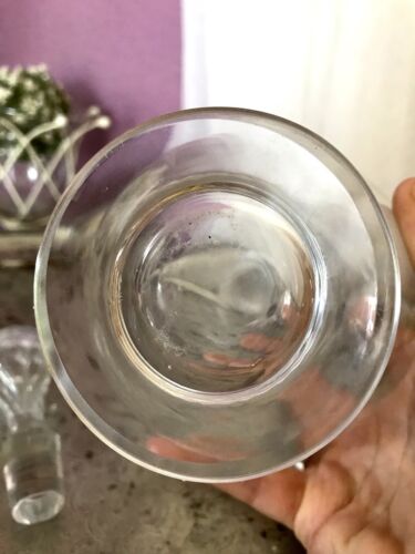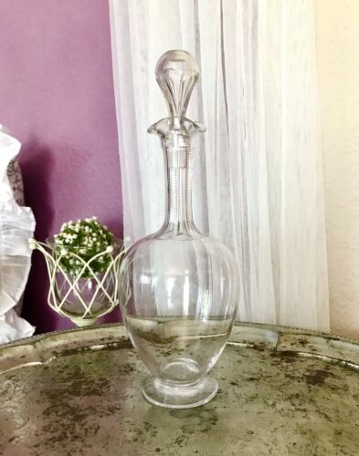 Kommodengriff präsentiert eine zauberhafte edle antike wohlgeformte mundgeblasene und handgeschliffene Glaskaraffe Kristallkaraffe? Karaffe mit edlem Stopfen (könnte von Baccarat sein, ist aber nicht gemarkt).