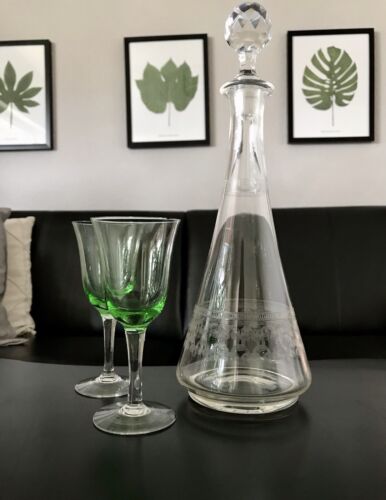 Antik Baccarat? Glaskaraffe Karaffe Bleikristall ? guillochiert? geätzt? Abriss
