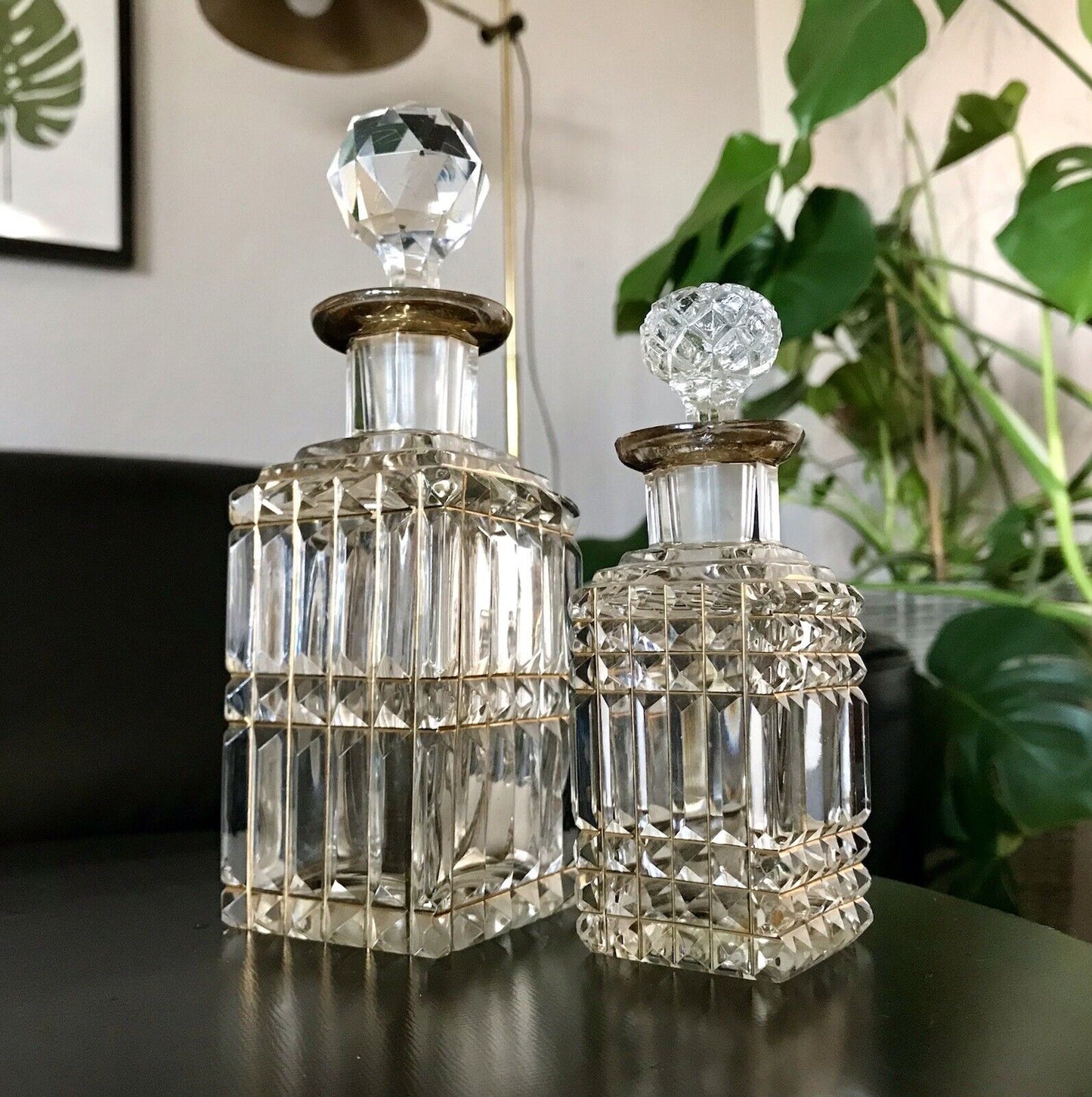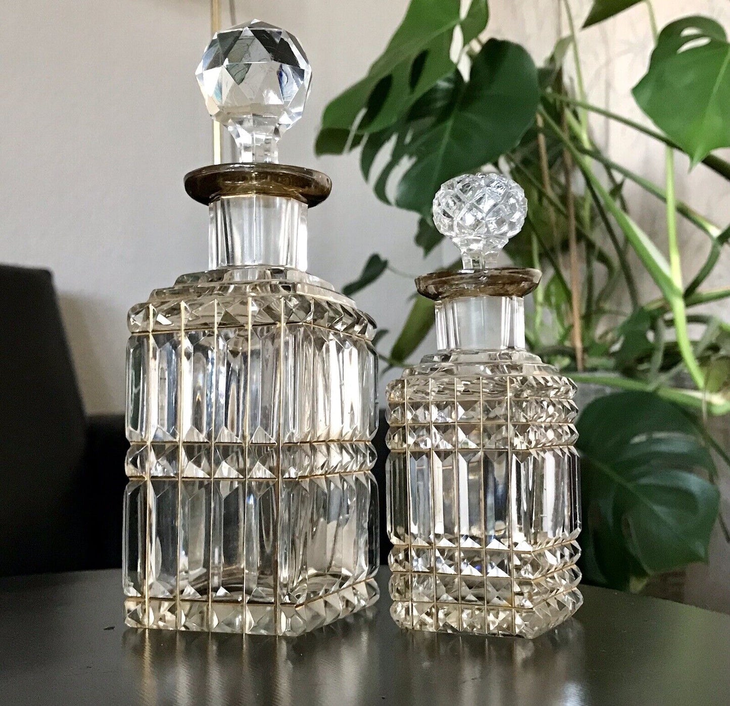 Kommodengriff präsentiert eine 1 wunderschöne zauberhafte sehr edle und sehr aufwendig gearbeitete wohlgeformte mundgeblasene geschliffene kleinere Glaskaraffe Kristallkaraffe Karaffe Flacon Parfümflakon mit edlem Schliff und Optik vermutlich von Baccarat