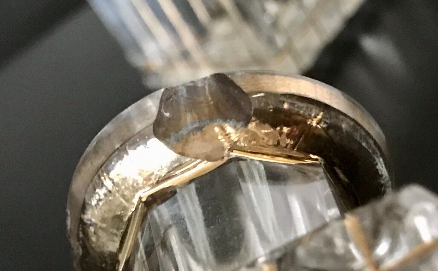 Sonst mehrere unterschiedlich große (von einzelne winzige bzw. sehr kleine und größere Bestoßungen der Kanten usw. aber keine Risse.