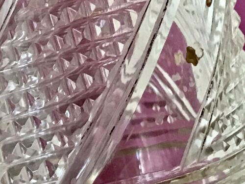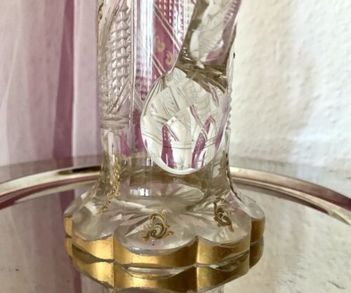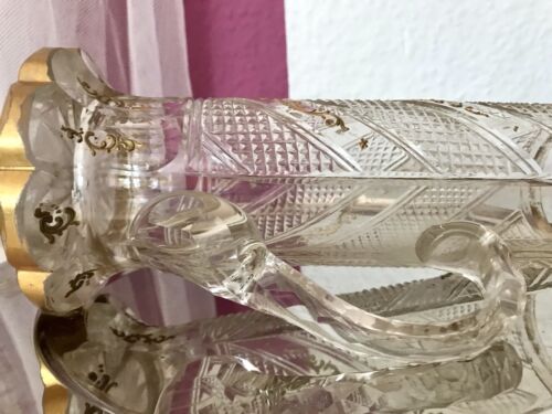 Wandung ist zylindrisch und mit wundervollem radial gedrehten passigen aufwändigen Schliff: Steinelschliff und Kerbschliff.