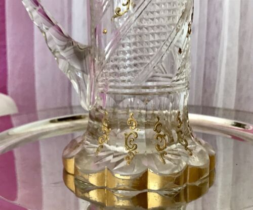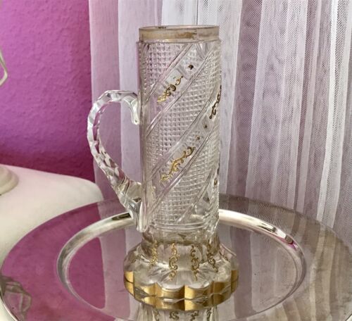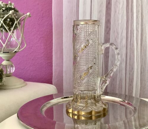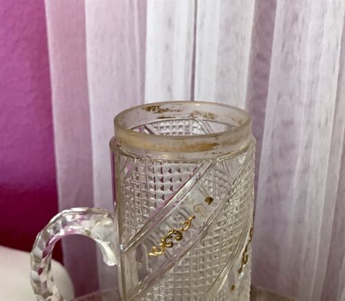 Antik Biedermeier geschnitten Schliff Goldstaffage Bierkrug Glas Krug Seidel