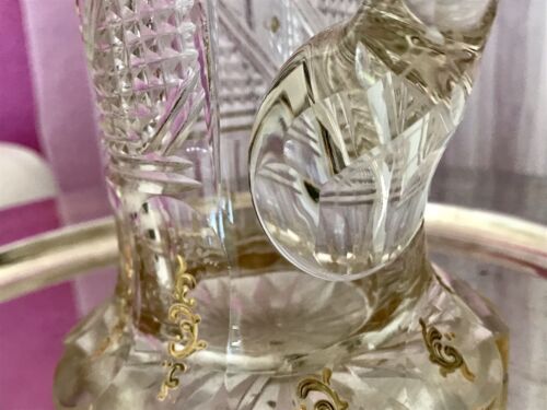 A09-04Kommodengriff präsentiert einen wunderschönen antiken seltenen Bierkrug Bierhumpen Seidel aus geschnittenem und geschliffenem Glas vermutlich Kristallglas Bleikristall und Goldstaffage