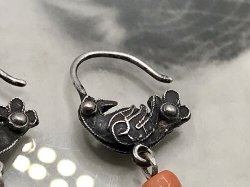 Antik Biedermeier Ohrhänger RAR Ohrringe DAMEN Silber Koralle Elster & Diebesgut