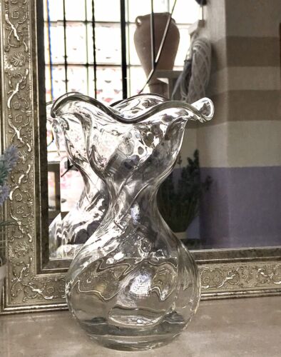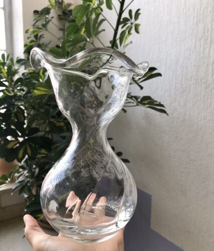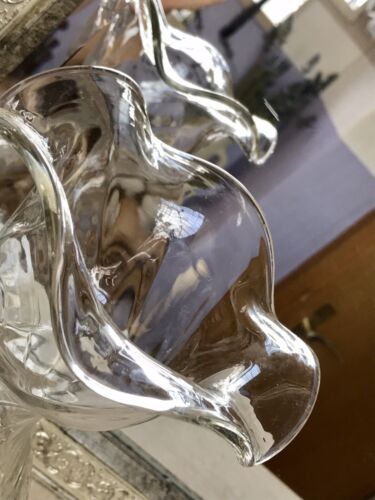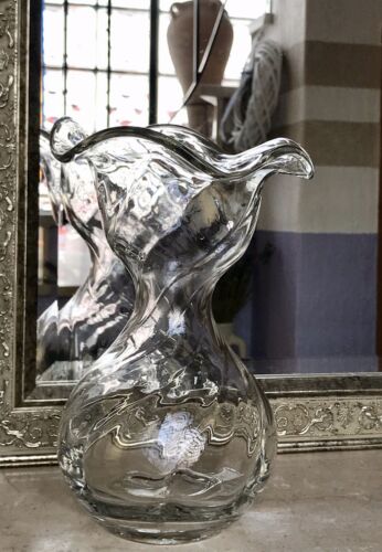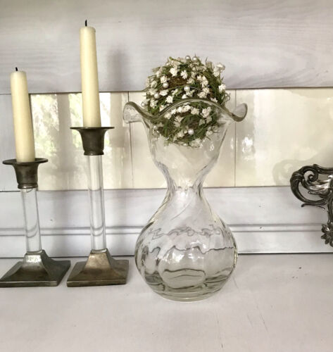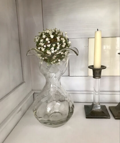 Antik Biedermeier Vase Glasvase optisch gerippt gewellter Rand Abriss Wundervoll