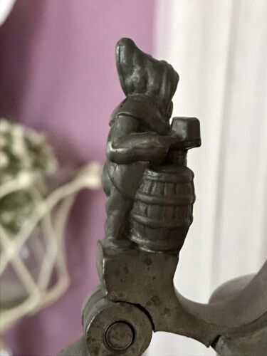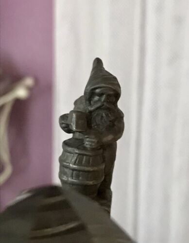 Kommodengriff präsentiert einen schönen antiken seltenen Bierkrug Bierhumpen Seidel mit Zinnmontur mit kuriosem Bergbau-Zwerg als Daumenrast ( mit nacktem Hintern) und geschliffenem Prismen-Glasstein Bergkristall?? auf dem Deckel