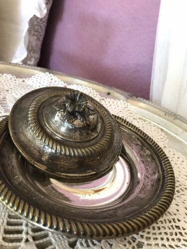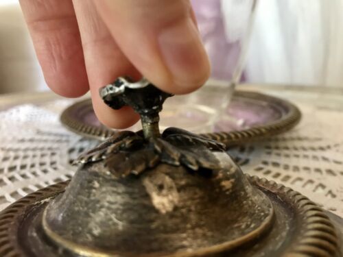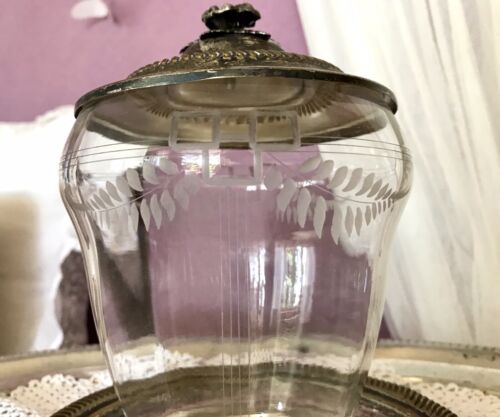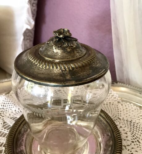 Antik Bonboniere Konfektdose Gefäß Glas versilbert Glasdose versilberter Deckel