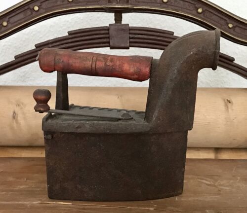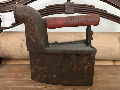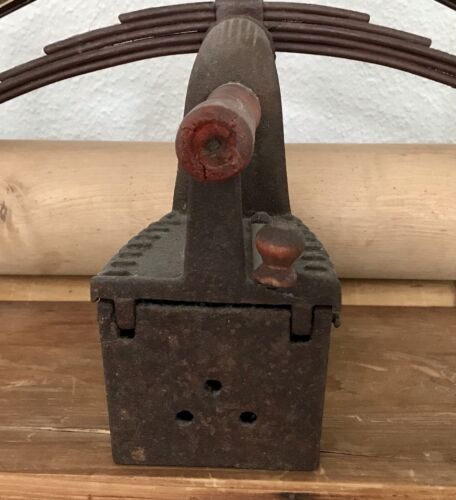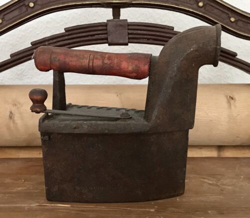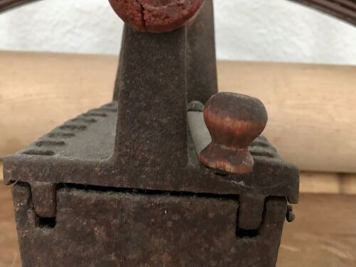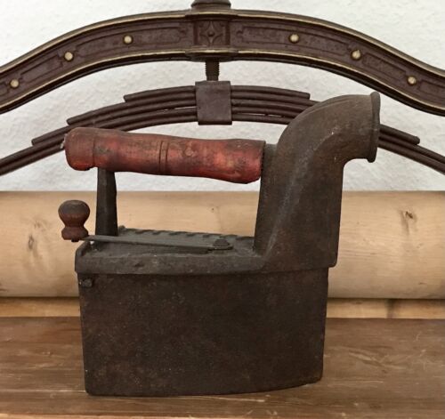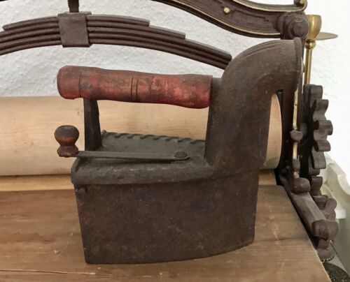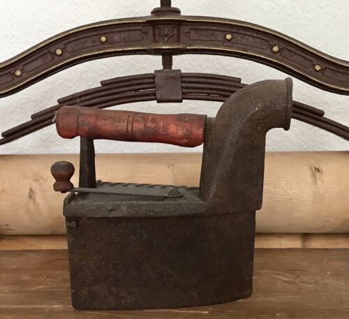 Kommodengriff präsentiert ein dekoratives antikes uraltes Schornstein-Bügeleisen aus den 1859-1900 Jahren