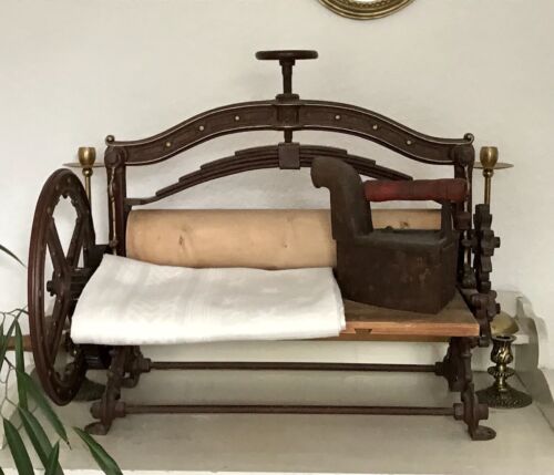 Die antike Mangel Kaltmangel Wäschepresse kann ich bei Interesse einstellen. Nur an Selbstabholer!