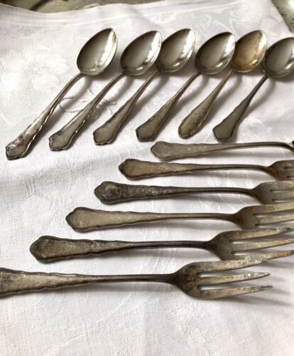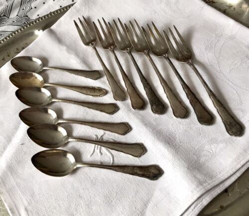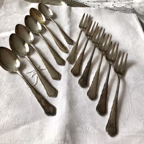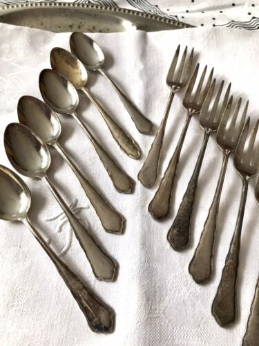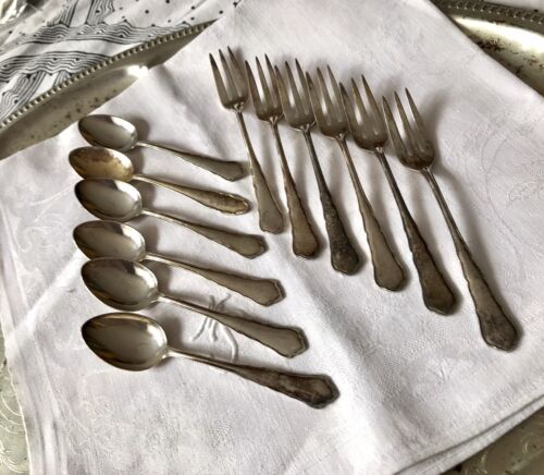 Antik Chippendale WMF 90 versilbert Kuchen Besteck 6+6 Kuchengabel Kaffeelöffel