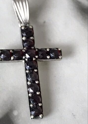 Antik Edel 4 cm Kreuz Anhänger Silber Granatsteine schlicht