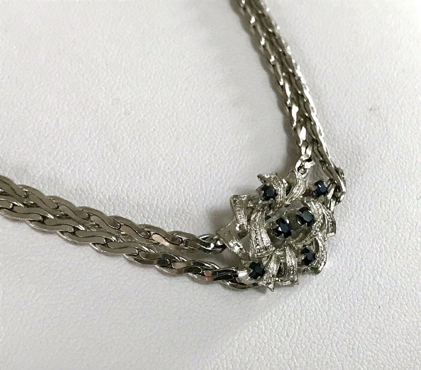 Antik Edel Art Déco 835 Silber Collier rhodiniert Halskette blau Steine