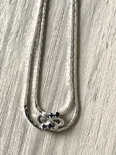 Antik Edel Art Déco 835 Silber Collier rhodiniert Halskette blau Steine Spinelle
