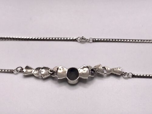 Antik Edel Art Déco 925 Silber Collier Halskette mit Onyx & Markasite