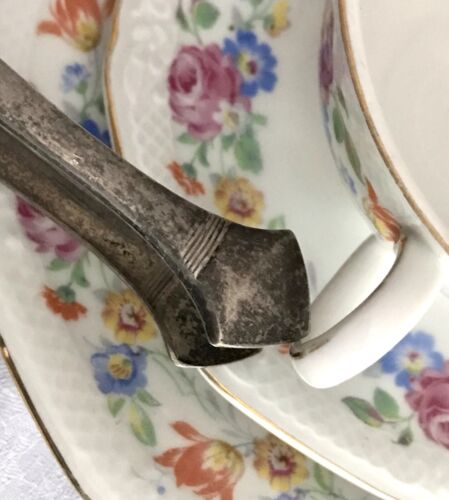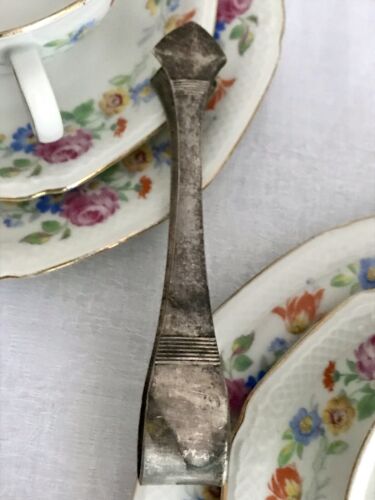 Kommodengriff präsentiert eine antike wunderschöne äußerst elegante und edle versilberte Art Déco Zuckerzange Konfektzange von Lenk