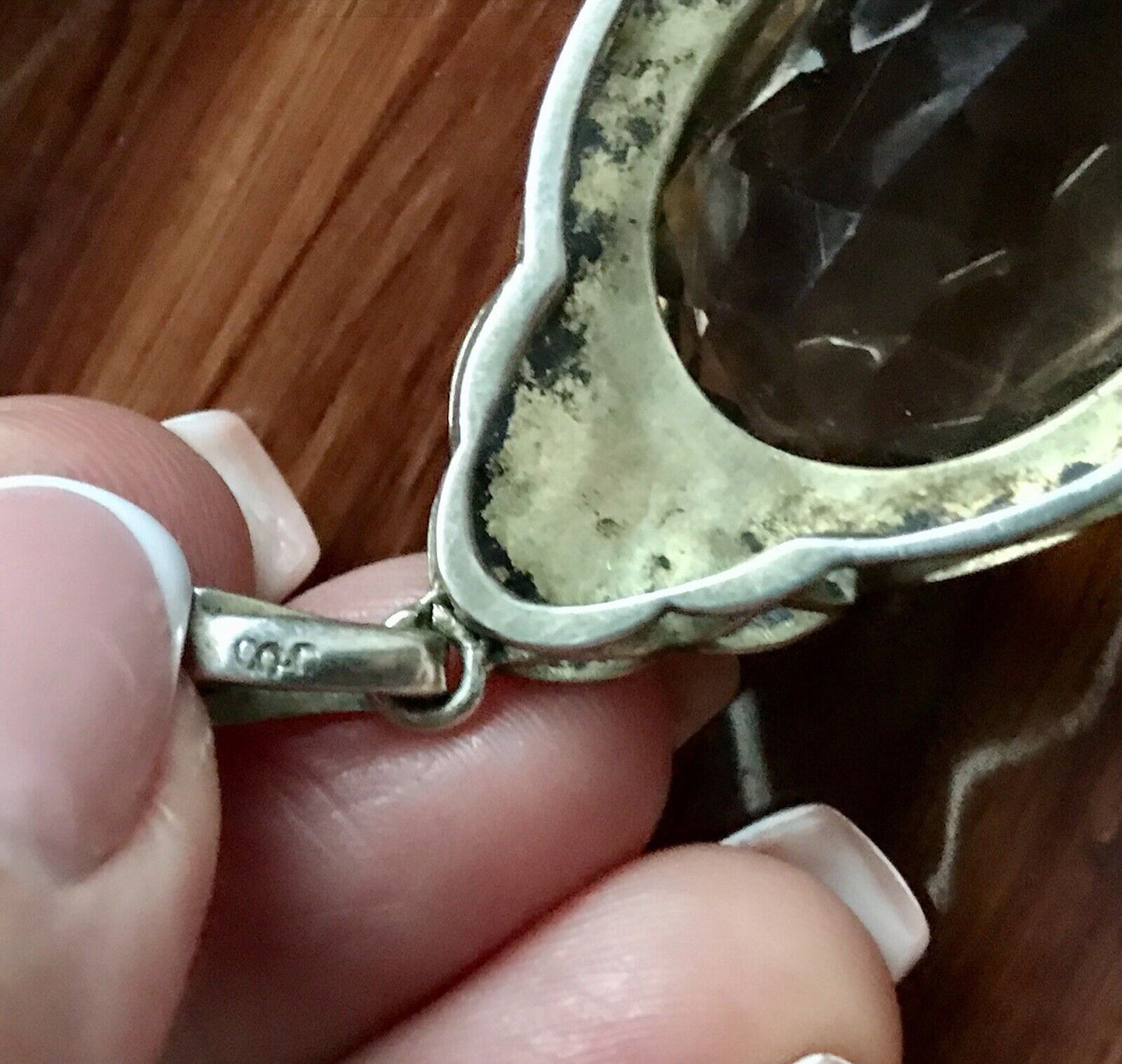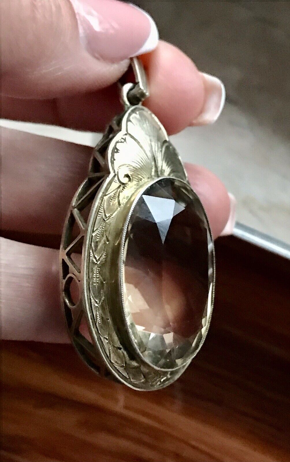 Antik Edel groß Anhänger Silber grauer Stein Super Design Rauchquarz? vergoldet