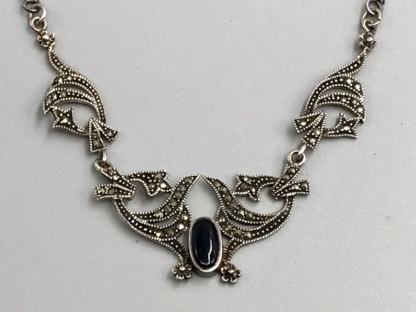 Antik Edel Jugendstil Art Déco 925 Silber Collier Halskette mit Onyx & Markasite