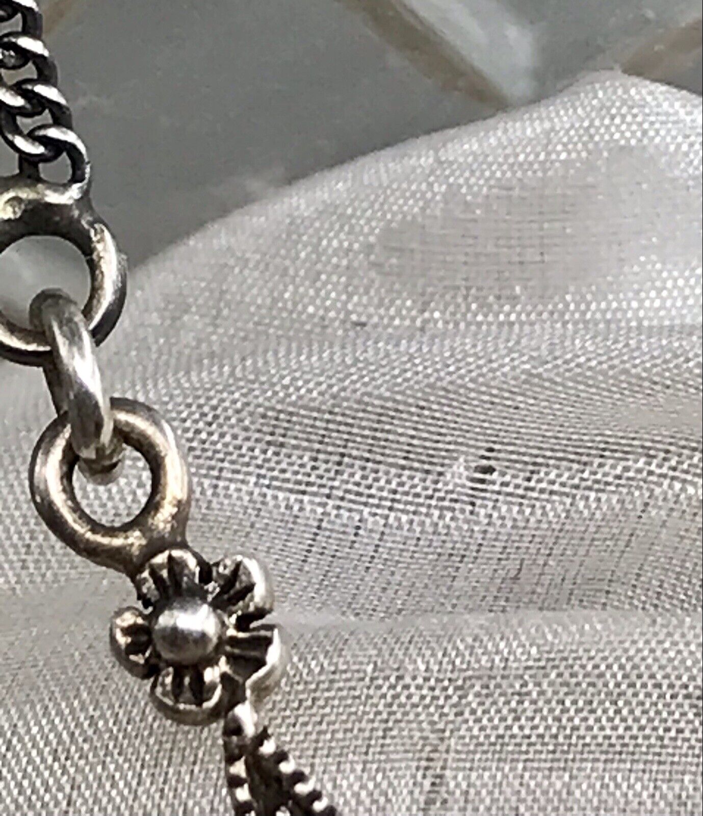 2 Kettenteile (letzter nahe Verschluss und dritter von oben andere Seite) etwas verdreht, was aber im getragenen Zustand wenig bis kaum auffällt.