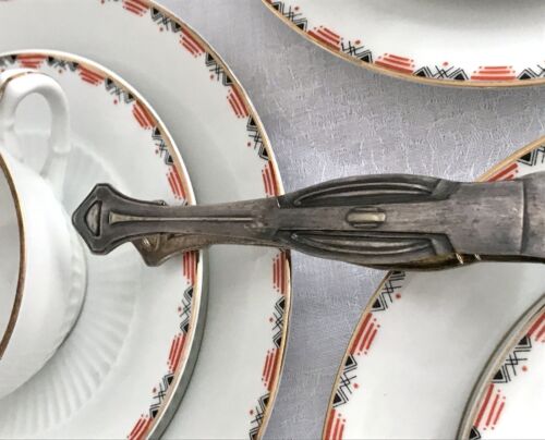 Kommodengriff präsentiert eine antike wunderschöne äußerst elegante und edle versilberte Jugendstil Zuckerzange Konfektzange von K&K