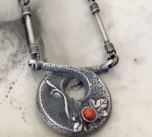 Antik edel Jugendstil Silber Collier Halskette roter Stein Originell