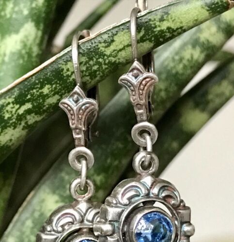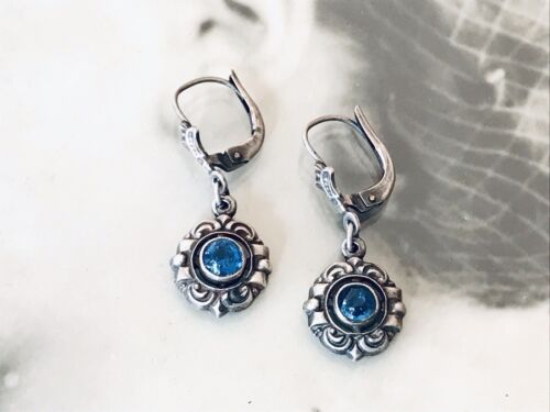 Antik Edel Ohrhänger Ohrringe DAMEN Silber blauer Glasstein 835 SUPER Design